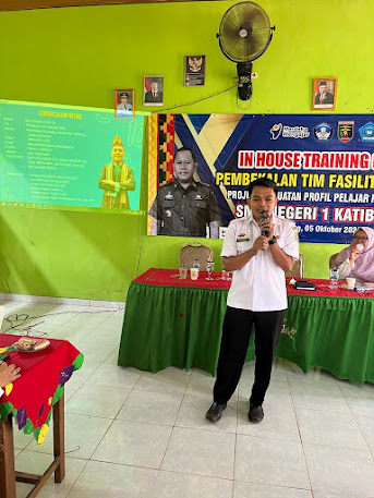 Kegiatan IHT pembekalan fasilitator P5 dan berbagi praktik baik pun terlaksana yaitu pada kamis, 15 Oktober 2023, kegiatan ini berlangsung dari pukul 09.00 WIB sampai dengan pukul 15.30 WIB yang dihadiri oleh semua dewan guru dan staf tata usaha SMAN 1 Katibung, Kegiatan diawali dengan pembukaan dan sambutan yang disampaikan oleh Kepala SMAN 1 Katibung, Ibu Yeni Noviyani, S.Pd. Kemudian kegiatan dilanjutkan pemaparan materi oleh Ibu Siti Rufianti Hasanah, S.Pd selaku Waka Kurikulum SMAN 1 Katibung. Beliau memberikan pengenalan P5 serta kaitannya P5 dengan Visi dan Misi sekolah. Selanjutnya materi dilanjutkan oleh bapak Arief Laksono, S.Pd.,Gr yang memaparkan tahapan-tahapan P5 secara umum serta prinsip-prinsip apa saja yang ada pada P5.